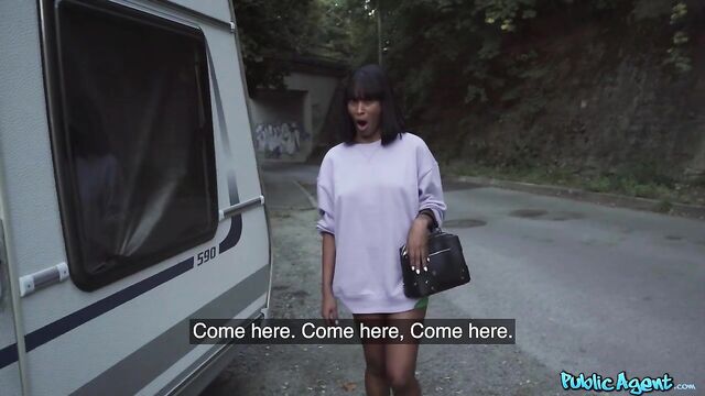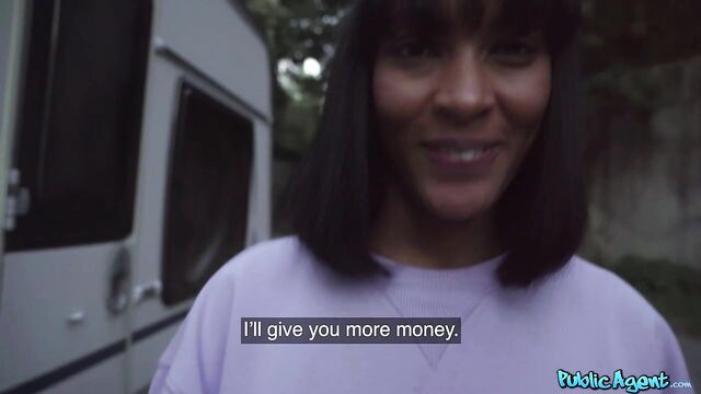 Description:Feeling mischeivous, I left some cash lying around and waited for a hot woman to walk by. Not long after, this raven-haired Colombian named Samantha Cruuz found the money, and then I showed her my dick! I offered her more euros in exchange for sexual favours, and she said yes! Following a sneaky blowjob, I took the gorgeous nymph to a more secluded place where she spread her long, slender legs and took a missionary-style pounding. While I fucked her, I played with her big natural tits, and then I stuck my cock back inside her pretty mouth! Afterwards, I put Samantha on her knees and banged her hard from behind in doggystyle while spanking her curvy ass, and then the curvaceous stunner straddled my lap and rode me in cowgirl. To finish, I gave Samantha a sexy side fuck, and her tight pussy felt so good that I creampied it!
