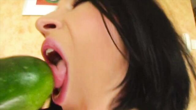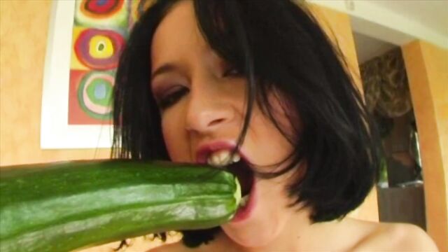 वर्णन: A stunning babe with a perfect set of tits and a tight pussy puts a bunch of strawberries and a large zucchini deep inside her wet hole.