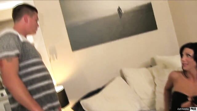 वर्णन: Bradley's friend is out of town for the weekend and knows his mom is home alone. Bradley walks into the house ready to persuade Jessica to open her pretty pussy for him. He walks in to his friend's mother's room and finds her pleasuring herself. Bradley gets Jessica to suck his pretty dick. Jessica in return gets head as well. Jessica gets on top of Bradley and starts riding him but she wants to suck him off again. Not only does she suck his penis, she also gives his butthole a lick. Bradley then throws her to the bed and gets her asshole ready for his huge dick. He tries for a moment to put it back in her wet pussy but she wants it in her ass to which he obliges and blows a load in it!
