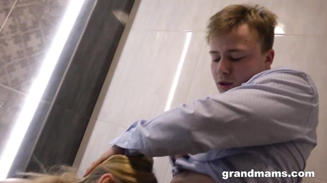 Description:Luccia was peeing but sees that her sneaky young lover who loves fucking her. Fortunately, her young fuckstud is perfectly willing to serve her old, wet pussy. She doesn’t ask him anything — she just pushes him around like the sex slave he is.