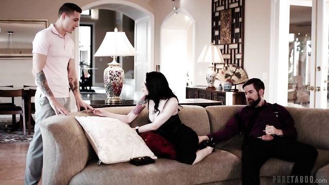 Description:Fletcher (Jayden Marcos) and Evelyn (Anna de Ville), a couple, approach Fletcher's summer home. As they stroll along, he boasts about the various homes his family has, making it very clear that he has a lot of wealth. It also becomes very clear that Evelyn wants in on that wealth as well...As they amble to the front door, it's revealed that they're getting the keys to a yacht, though Evelyn seems a bit impatient and nervous. They think the house is empty but it turns out that Fletcher's stepdad, Harrison (Chris Epic), is inside. Evelyn isn't pleased, although Fletcher seems oblivious to this.After sitting down, Harrison asks about Evelyn, discovering that she's a very new girlfriend. She tries to charm Harrison but he is a bit wary of her. Meanwhile, Fletcher seems unaware of their dynamics, insisting they need the yacht keys, which has Harrison curious. Evelyn quickly tries to lie but Fletcher blurts out that they want to check out the yacht as a possible wedding venue.Harrison is surprised and there's a bit of tension between him and Fletcher since this is news to Harrison. Evelyn jumps in to try and defuse the situation, which only makes Harrison more suspicious of her. Finally, Harrison asks Fletcher to go fetch something to celebrate their engagement with.After Fletcher leaves, Harrison confronts Evelyn. He is calm and transactional as he tells Evelyn he knows what she's up to... He KNOWS she's a gold-digger. He's willing to look the other way and let Evelyn teach his stepson a lesson about being too trusting -- only if Evelyn gives him a blowjob.Evelyn is surprised but eager to buy Harrison's silence, so she eagerly gives him a blowjob. But everything's about to be thrown into turmoil as Fletcher returns much sooner than anticipated...