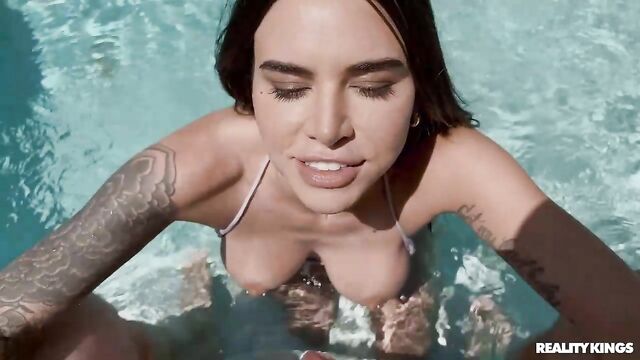 Description:Everyone's excited for brunette centerfold Suttin's first ever RK scene, especially the tattooed babe herself! Follow Suttin every step of the way, from packing to her flight to the Miami beach, with plenty of tit and booty flashing along the way. Suttin can't even wait to get back to the spot once she meets Jmac, playing with her pussy and sucking his big dick in the car. She eagerly strips naked in his pool so he can film her underwater, then finally takes that big Jmac cock in her tight pussy till she squirts!
