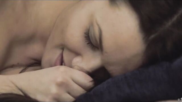 Description:Beautiful brunette Frida is upset about the threesome she enjoyed with her lover Amarna Miller and cute Kari A. It’s an unexpected start to episode three of Andrej Lupin’s erotic movie series "Neighbors," but one that Amarna resolves through the healing power of sex. Expressing her love and regret, topless Amarna kisses her sweetheart tenderly. Frida’s passion rises and she sucks hard on Amarna’s stiff nipples, stroking her through her panties and making her writhe with pleasure. Peeling the panties off, she goes down to lick and rub Amarna’s hairy pussy, looking up to watch her pretty face as she goes wild. Amarna squeezes her own breasts and strums her clit as Frida finger-bangs her rapidly, tipping her over the edge into a howling orgasm. Moving into spoons, Amarna frigs Frida from behind, making her shudder with arousal. She clutches the sheets, stiffening then shaking in the grip of a powerful climax. Amarna’s not done apologizing though, and eats Frida’s sweet pussy until she has a second, even more overwhelming orgasm. They wind down in each other’s arms, their relationship harmonious once more.