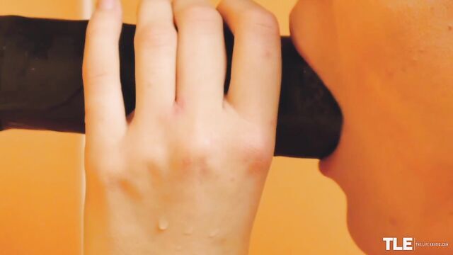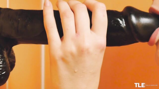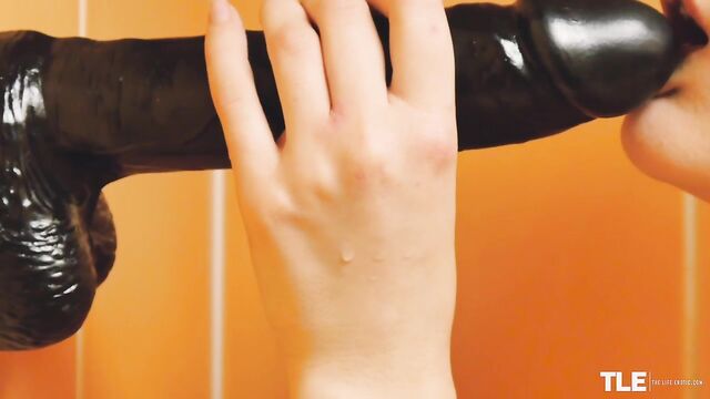Description:For gorgeous Latvian blonde Sigy Black, It’s Friday night and also her birthday – but the horny nurse is home alone after a heavy shift at the hospital where she works. However, as she showers, she has her large black dildo to keep her company and help her unwind. With the sucker base stuck to the wall at face level, she caresses the heavy, wrinkled balls and veined shaft as she nuzzles and licks the head then runs her tongue over every inch of the toy. She takes the bulbous crown in her mouth, sucking on it rhythmically as she jacks the length. Meanwhile, her free hand is masturbating her shaved pussy, fingertips circling hard and fast over her clit. Next, she slides the mock-cock lower down the wall and feeds it into her snatch from behind, humping and grinding against it slowly as the camera takes in every detail of her slim, perfect body, beautiful natural breasts and pretty face. Then she takes it doggie style on all fours, backing on and off of it as almost the entire length penetrates her. Her breaths come deep and hard as her hand strokes her smooth, firm ass cheeks and she is soon on the brink of orgasm. Finally, she positions the dildo upright in a corner of her shower and squats on her haunches, back pressed up against the cool tile, to ride it to a climax. Her hands tease her tits and nipples as she cums and she raises herself up off of it, squirting a golden shower of pee as release ripples through her.