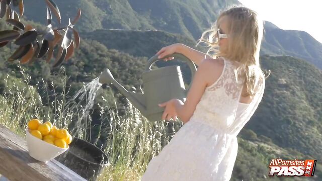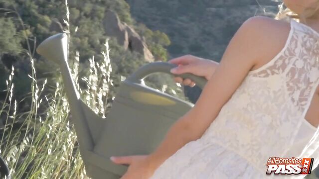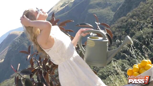 Description:Alright, we have the gorgeous Jillian Janson have fun outdoors. You'll get to see this stunning blonde beauty in a cute white dress pose provocatively. Next, we see her spread-legged and masturbating with her panties pulled aside.